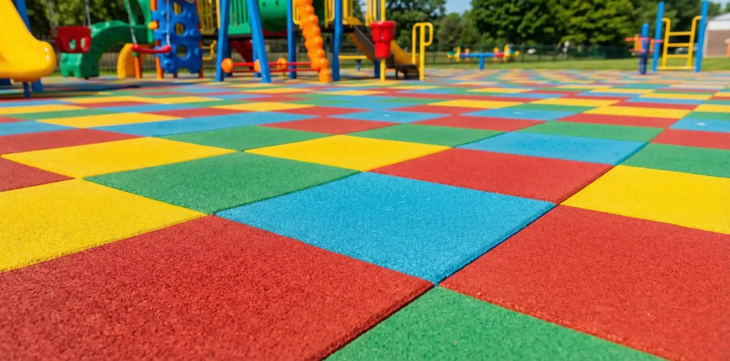 Safe rubber flooring solutions designed for playgrounds and children’s activity areas. Provides impact absorption to reduce injury risk while offering colorful and durable surfaces.