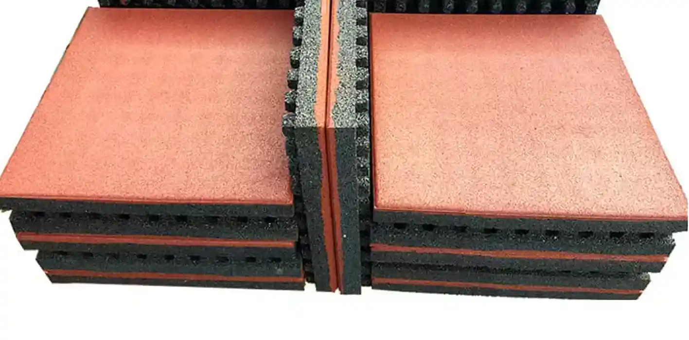 High-density rubber tiles designed for gyms and fitness facilities. They provide excellent shock absorption, noise reduction, and resistance to heavy equipment and repeated impact.