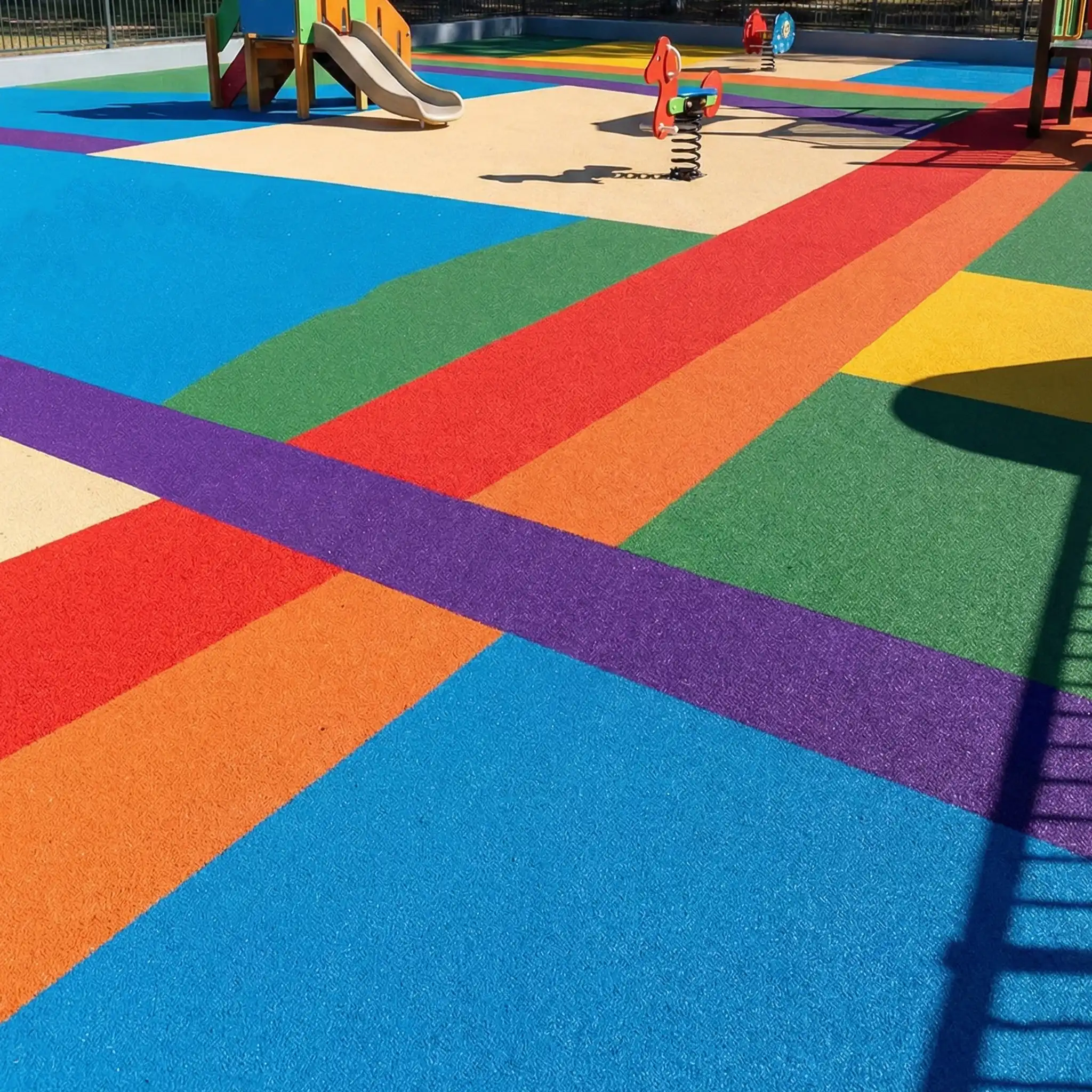 The system offers excellent shock absorption, slip resistance, and long-term durability for outdoor environments.